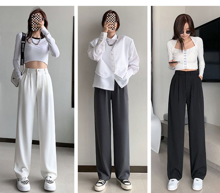 하이웨이스트 드레이프 일자핏 와이드 팬츠